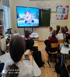 В преддверии зимних каникул (23 декабря) учащиеся 1-5 классов на пятииминутке безопасности вспомнили правила поведения вблизи водоемов, обсудив действия героев мультфильма из серии " Азбука безопасности"